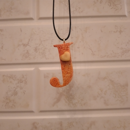 گردن آویز چوبی معرق طرح حرف لاتین J سایز 35×20 میلیمتر