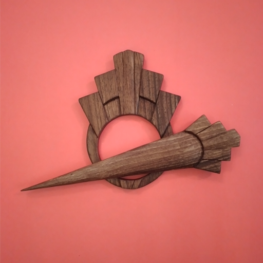 گلسر چوبی (پین و حلقه) طرح رومی از جنس چوب گردو قطر داخلی حلقه 5.5 و سایز پین 18 سانتیمتر