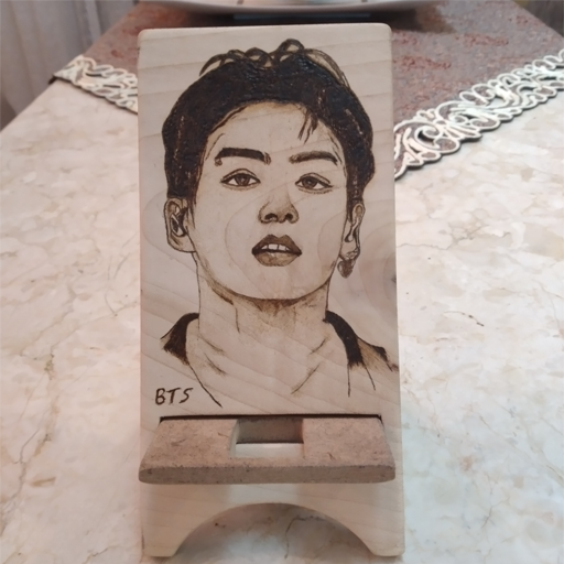 استند چوبی سوخته نگاری شده گوشی موبایل طرح BTS
