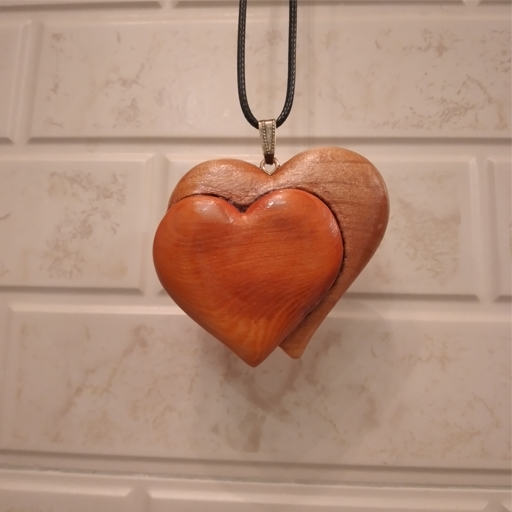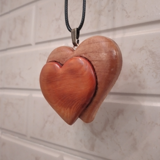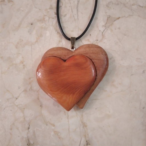 این محصول به روش معرق کاری با استفاده از دو نوع چوب ممرز و سیردار ساخته شده است جهت زیبایی قوام و جلوه ی بیشتر رگه های چوب لایه ای از سیلر و کیلر بر روی محصول اعمال شده است از این محصول میتوان بعنوان آویز گردن و همچنین بعنوان آویز آینه ی داخل کابین خودرو استفاده کرد