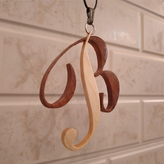 گردن آویز چوبی معرق طرح حرف لاتین B تلفیقی از چوب افرا و گیلاس سایز 6×7 سانتیمتر