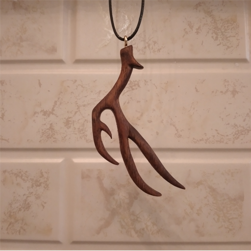 گردن آویز چوبی طرح شاخ گوزن از جنس چوب گردو سایز 65×35 میلیمتر