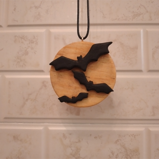 گردن آویز چوبی طرح خفاش در مهتاب به قطر 55 میلیمتر