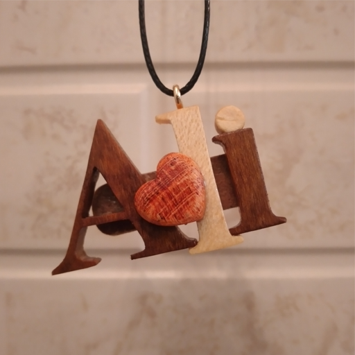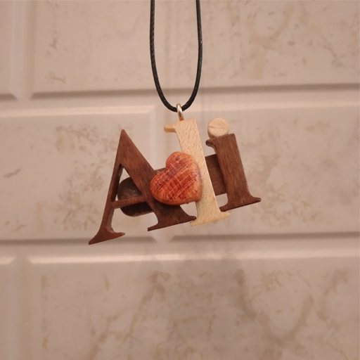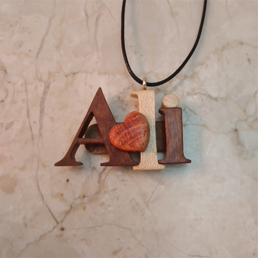 گردن آویز چوبی معرق طرح اسم علی به حروف لاتین سایز 4×3 سانتیمتر