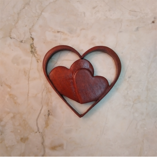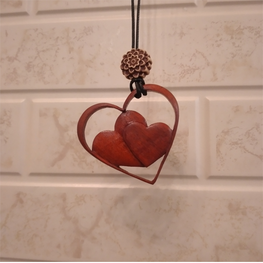 گردن آویز چوبی معرق منبت طرح دل تو دل سایز 45×45 میلیمتر