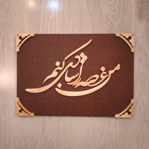 تابلو چوب معرق منبت متن نوشته طرح من غصه را شادی کنم سایز 21×29 سانتیمتر