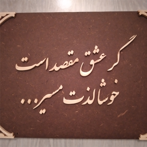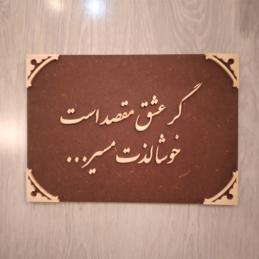 تابلو چوب معرق منبت متن نوشته طرح گر عشق مقصد است خوشا لذت مسیر سایز 21×29 سانتیمتر