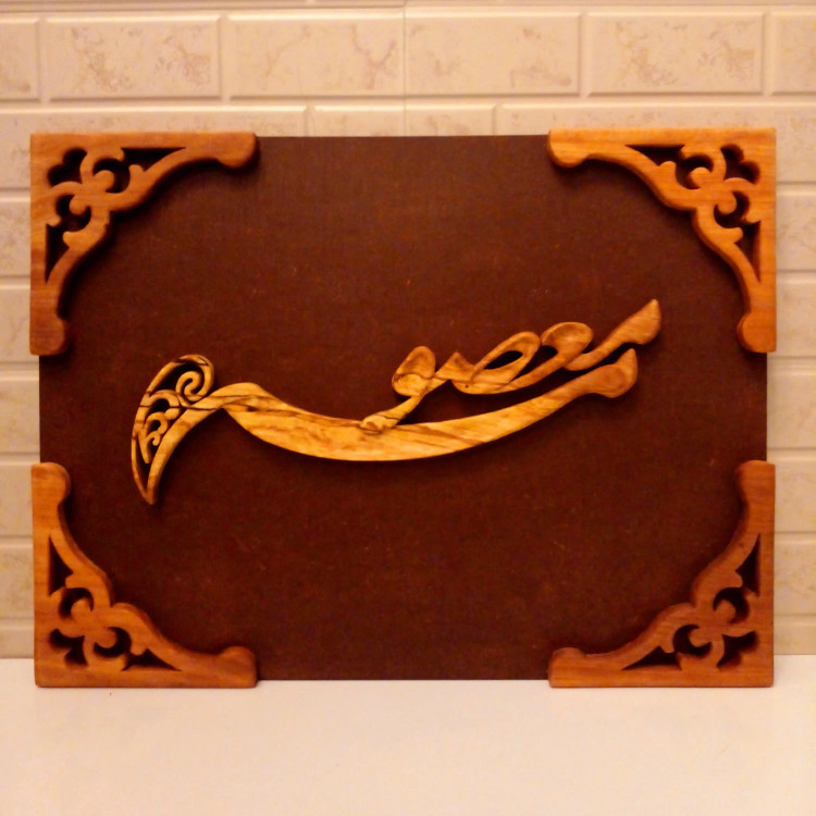 تابلو چوب معرق منبت طرح معصومه اجرا شده روی ام دی اف خام سایز 30×40 سانتیمتر