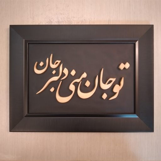 تابلو چوب معرق منبت طرح دلبرجان سایز 29×38 سانتیمتر با قاب پی وی سی و زمینه ی چرم مصنوعی